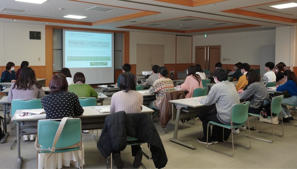 医療的ケア児支援センターの取り組みについての講義 研修・講習 2024.02.26 埼玉県から福祉、教育を志す文教大学の学生さんがセンターの取り組みや地域の現状を学びに来てくださいました。 講義を通して、こちらの問いかけに積極的に発言していただき、医療的ケア児の支援について、一緒に考えることができました。 講義後も積極的な質問が数多くあり、学生の皆さんの熱心な姿勢を感じ、センター職員にとっても新たな気持ちになる、貴重な体験をさせていただきました。