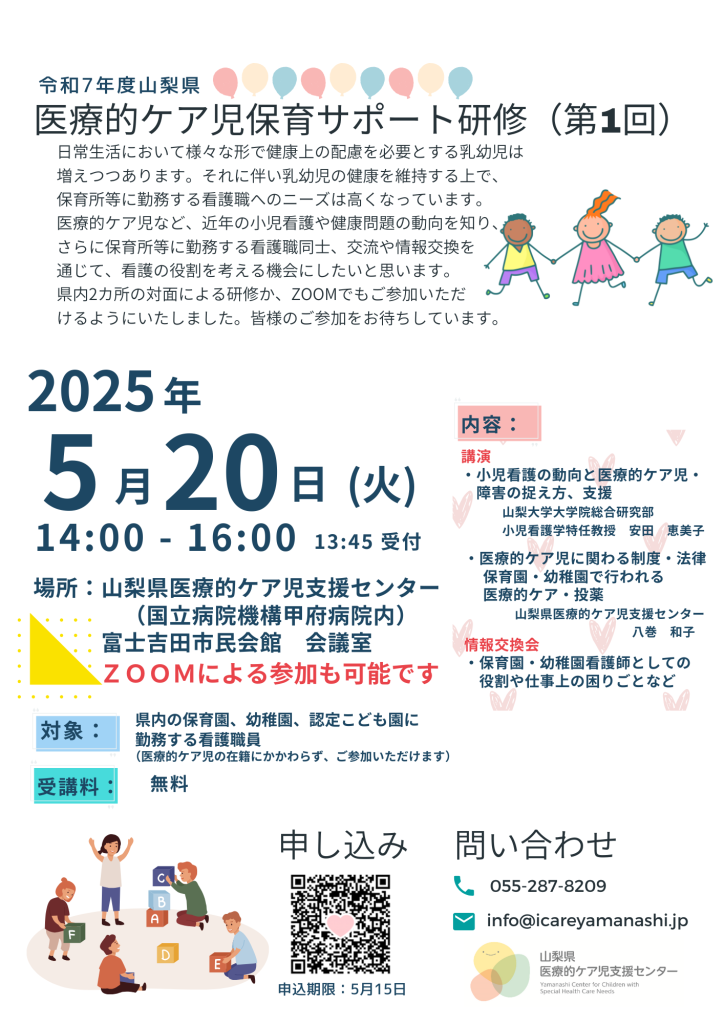 第1回 医療的ケア児保育サポート研修のお知らせ
